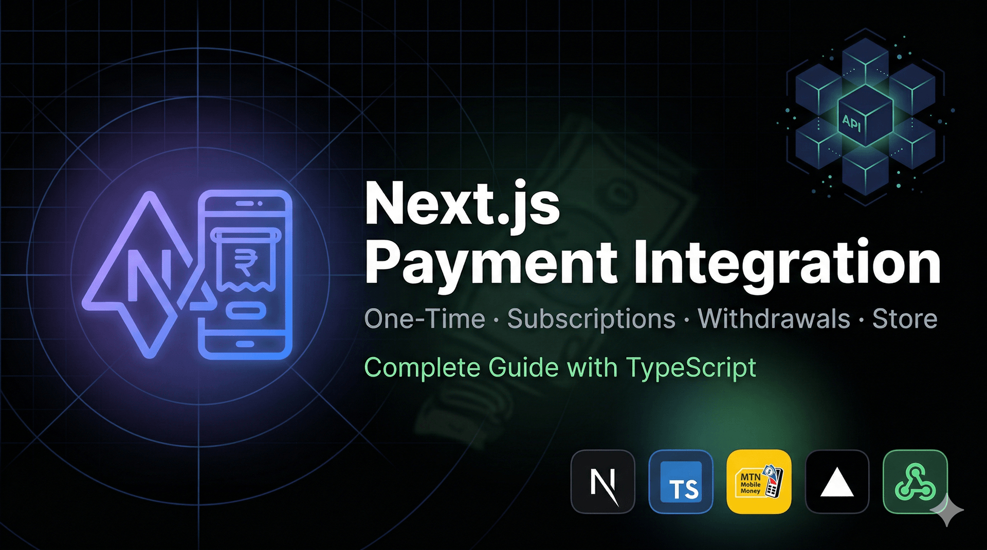 Step-by-step tutorial for integrating DGateway into a Next.js app with TypeScript. Accept MTN Mobile Money and card payments, handle subscriptions with Vercel Cron Jobs, process withdrawals, and embed your DGateway store — courses, products, events, templates, and payment links.